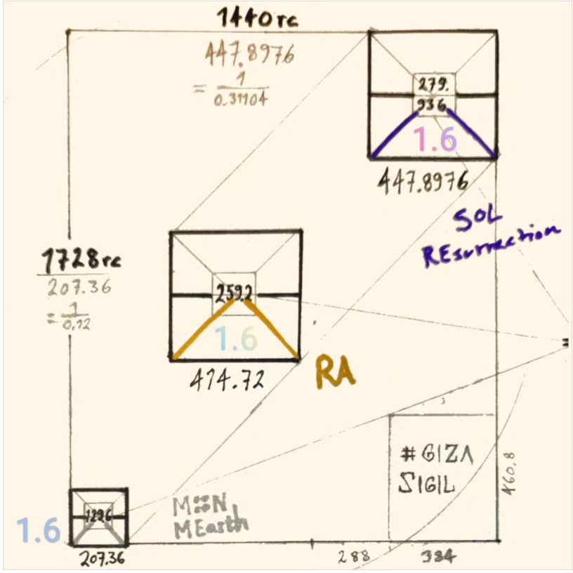 The Egyptian spreadsheet in ‘Royal cubits (rc)’ of our solar system cunningly designed in the Giza Plateau 1728rc /1440rc, GP footprint #Gizasigil.